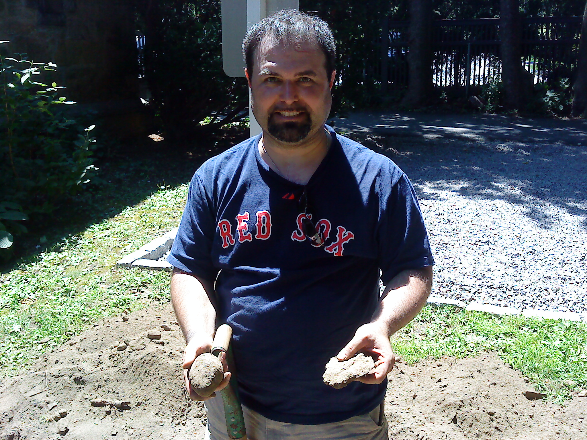 That was a lawn, so all of the dirt you see is dirt we scooped out of that trench. Once we got down about six or eight inches we started hitting all sorts of rock, which slowed us down considerably, as did the large number of roots from a nearby oak tree.
