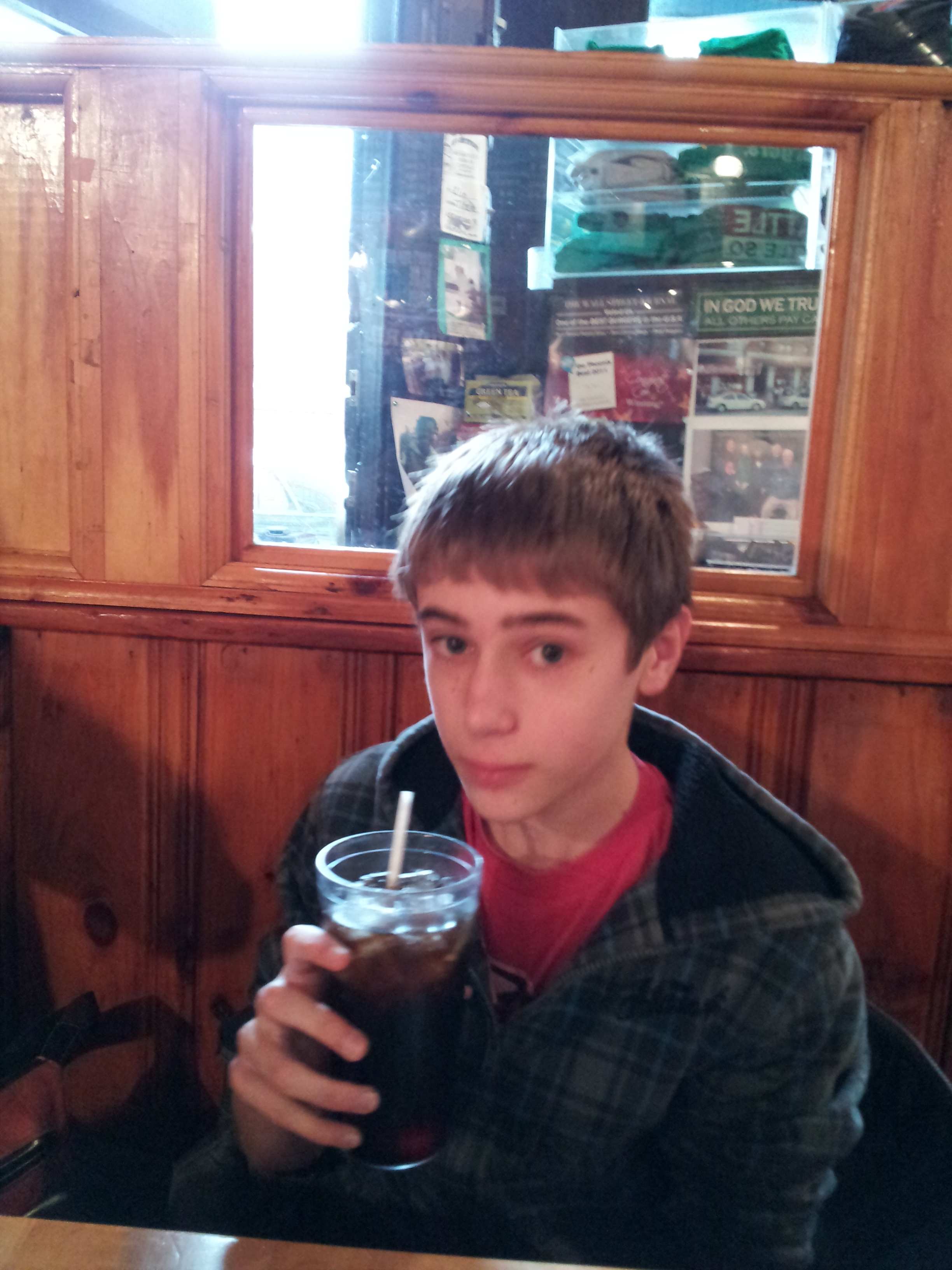 After we left the MOS we split up. Liz and Kelly took Kate to this place in Inman Square called Stellabella Toys. I took Will and Ben to the Newbury Comics down at the Garage, on the other side of Harvard Square. They had never been to one before, but boy did they like it. We probably could have spent a lot more time in there, but we had to get back to we could drive up to Lowell to meet Aunt Donna for dinner. So we took two vehicles this time and then headed up to Lowell to pick her up. We went to Mama’s in Dracut for dinner, and boy do I love that place. Kelly and I had been there once before but Liz and the kids had not. They liked it too.