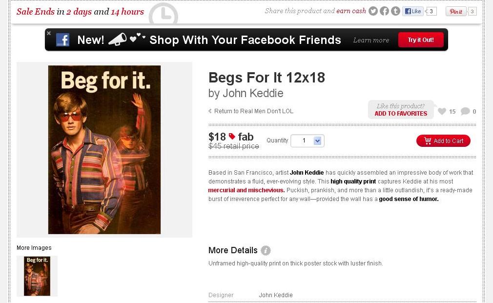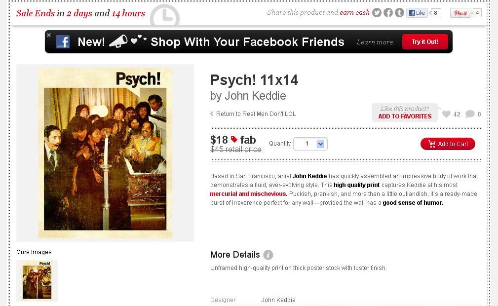Today I got my daily email from Fab.com. One of the featured shops was for artist John Keddie, a San Francisco based artist who is a multimedia computer savvy type guy. He also very clearly has an appreciation for pop culture and, well, twisted humor. That’s why we’ve put up 7 of his posters. The rest are probably too, um, gritty for our parents. As they read this blog regularly and may pass out from too much grit, we’ve erred on the side of caution with our choices.