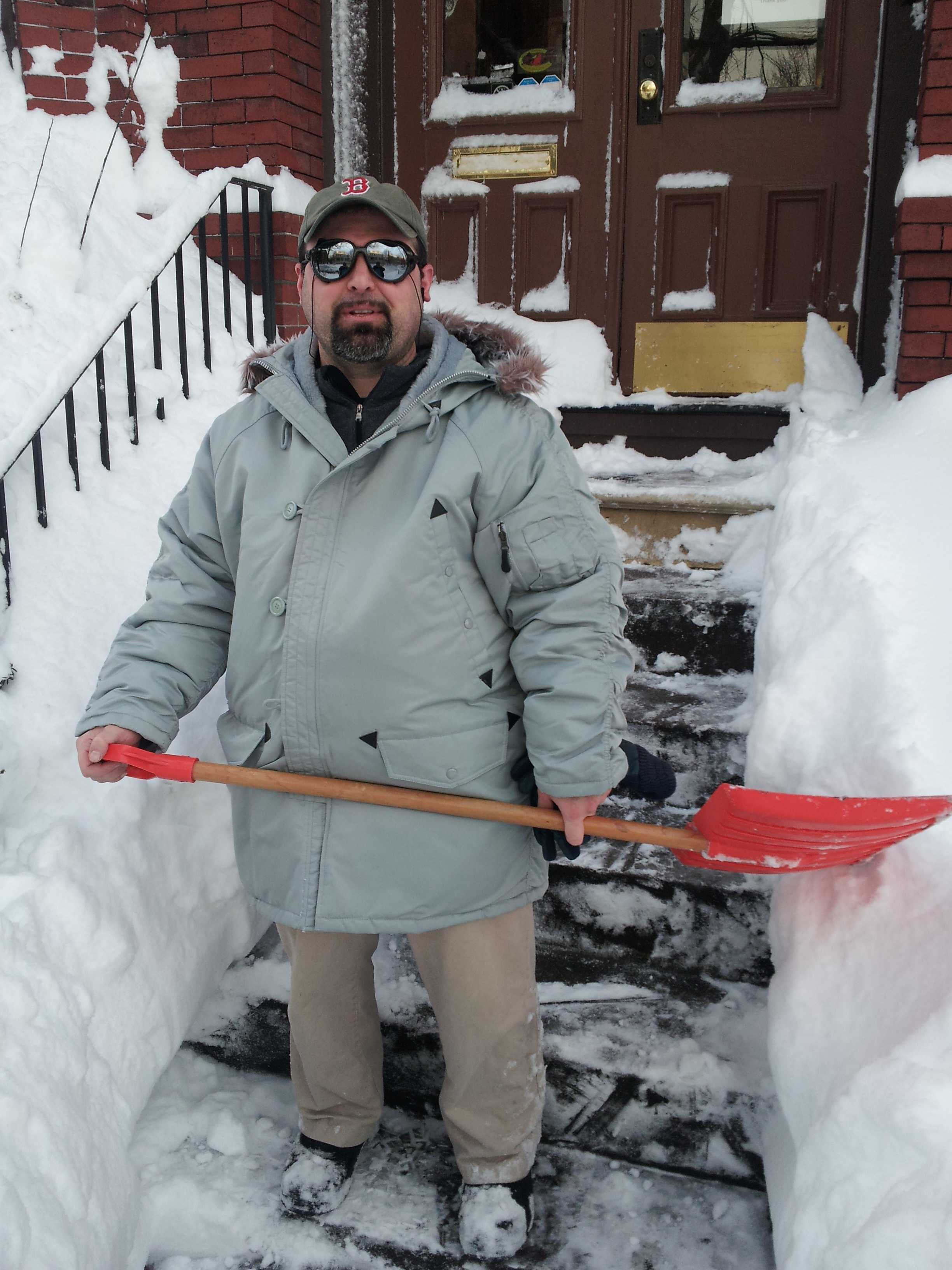 That car across the street? The Mini is behind it, and the truck is behind the Mini. You can barely see them. At this point a handful of cars had been dug out and the street had been plowed, more or less. So we got out the snowshovels and the snow blower and got to work. And I got to channel my inner R.J. MacReady.