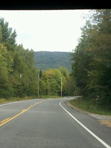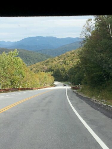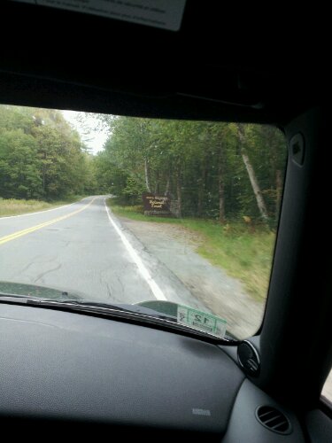 For part of the trip, we were actually driving through the White Mountains. While the leaves weren’t changing (and we didn’t have to contend with hordes of Leafers) the scenery is still pretty picturesque. There were scattered signs that said “Moose Crossing” but we didn’t get any pictures of them. We also saw brochures on how to deal with bears in a few visitor centers. But the views of the mountains were just spectacular. We even got right up to the Vermont border at one point.