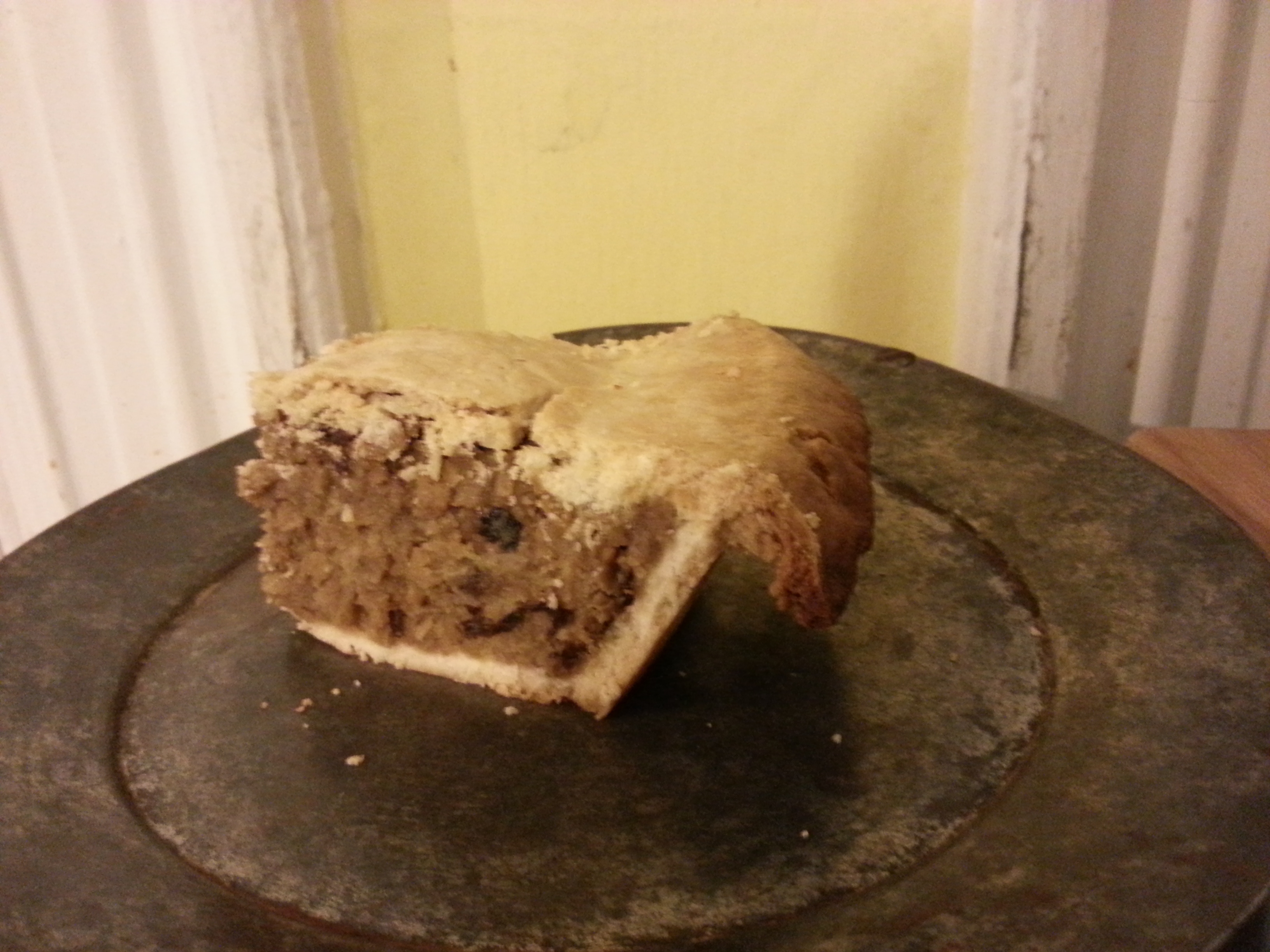 I promised I would post a picture if I managed to make anything that came out reasonably tasty, and so here you go. This is the Pork Pie recipe from A Feast of Ice and Fire, but made with a “Ground Sausage” from one of those companies that make meat substitutes. It came out delicious, despite my inability to do the top crust correctly (hopefully do better next time).