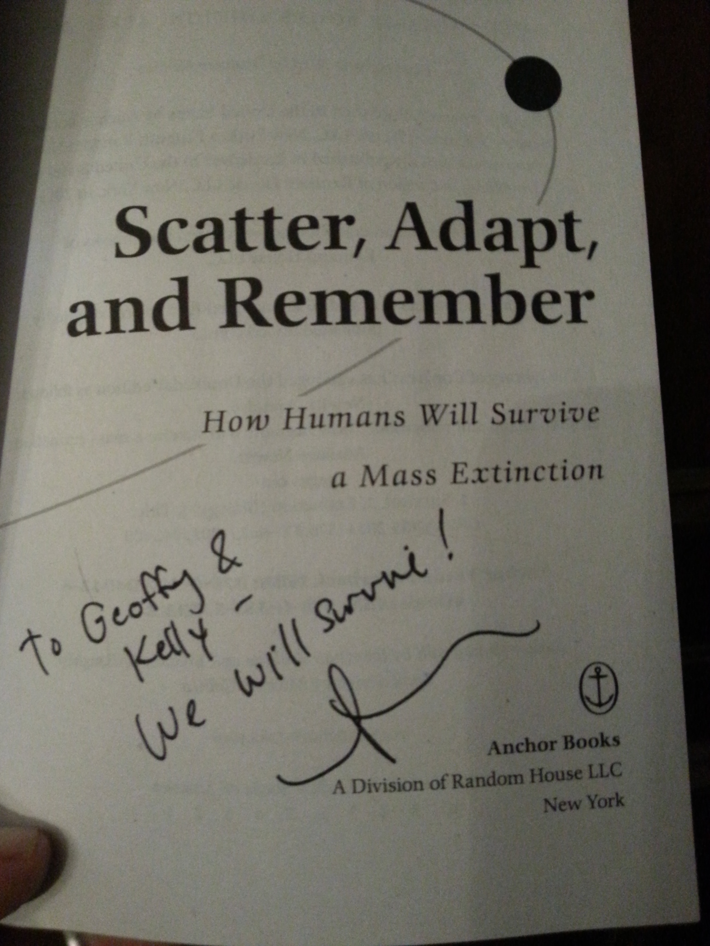 How Humans Will Survive a Mass Extinction. And it was quite illuminating, and a lot of fun to boot. Count on the Harvard Bookstore to always bring in cool authors.