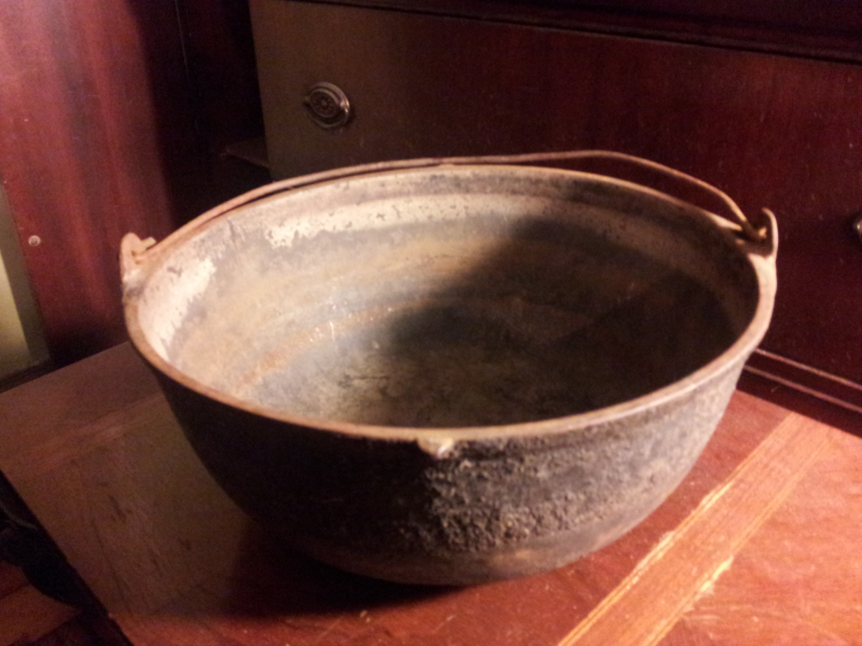 All of them need to be cleaned and re-seasoned. Geoff is in the process of taking care of that now. All three cauldrons cost $60 total. That’s a steal.