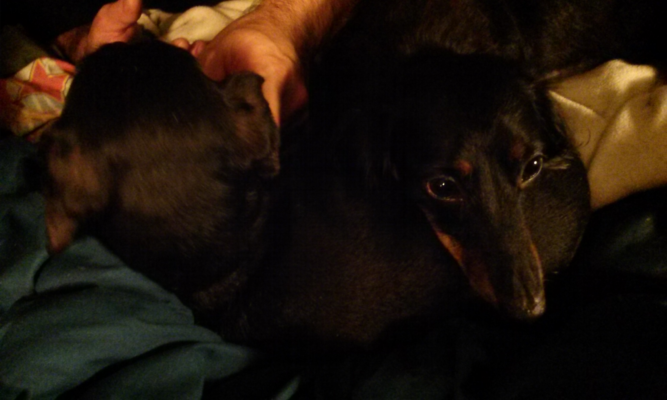 Today we brought home the newest member of our family, Dash. Dash is a 6-year-old black and tan tweenie male long hair dachshund. We thought initially that the previous owners had named him Dash because so many people mispronounce dachshund as “dash-hound.” Apparently that’s not the case, this little guy is fast.