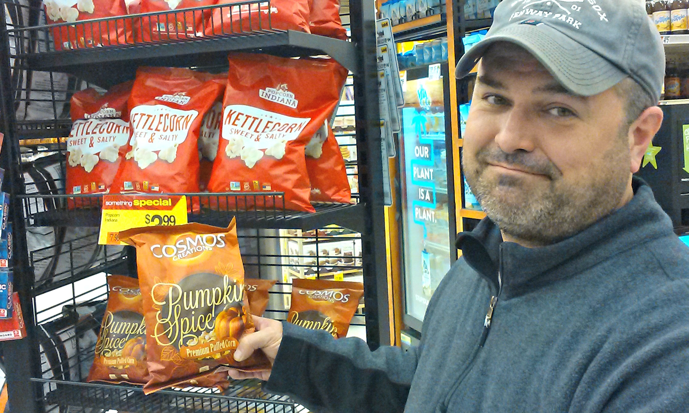 In case anyone forgot about this Fall… Actually, it was sort of from August onward, let us recall the Pumpkin Spice hysteria. (The forgotten Spice Girl, har, har, har.) It reached a fever pitch just before Halloween. Geoff and I saw Pumpkin Spice *everything* while food shopping. On a sort of dare we tried Hood Pumpkin Spice Ice Cream Sandwiches. They were passable.