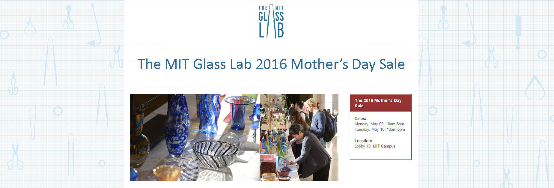 Next, glass. MIT is famous for a number of things. One of them is that we have our own glass blowing lab. This class is almost impossible to get into. But, the things created by the people who take the class are pretty amazing, and you can buy them. Check it out.