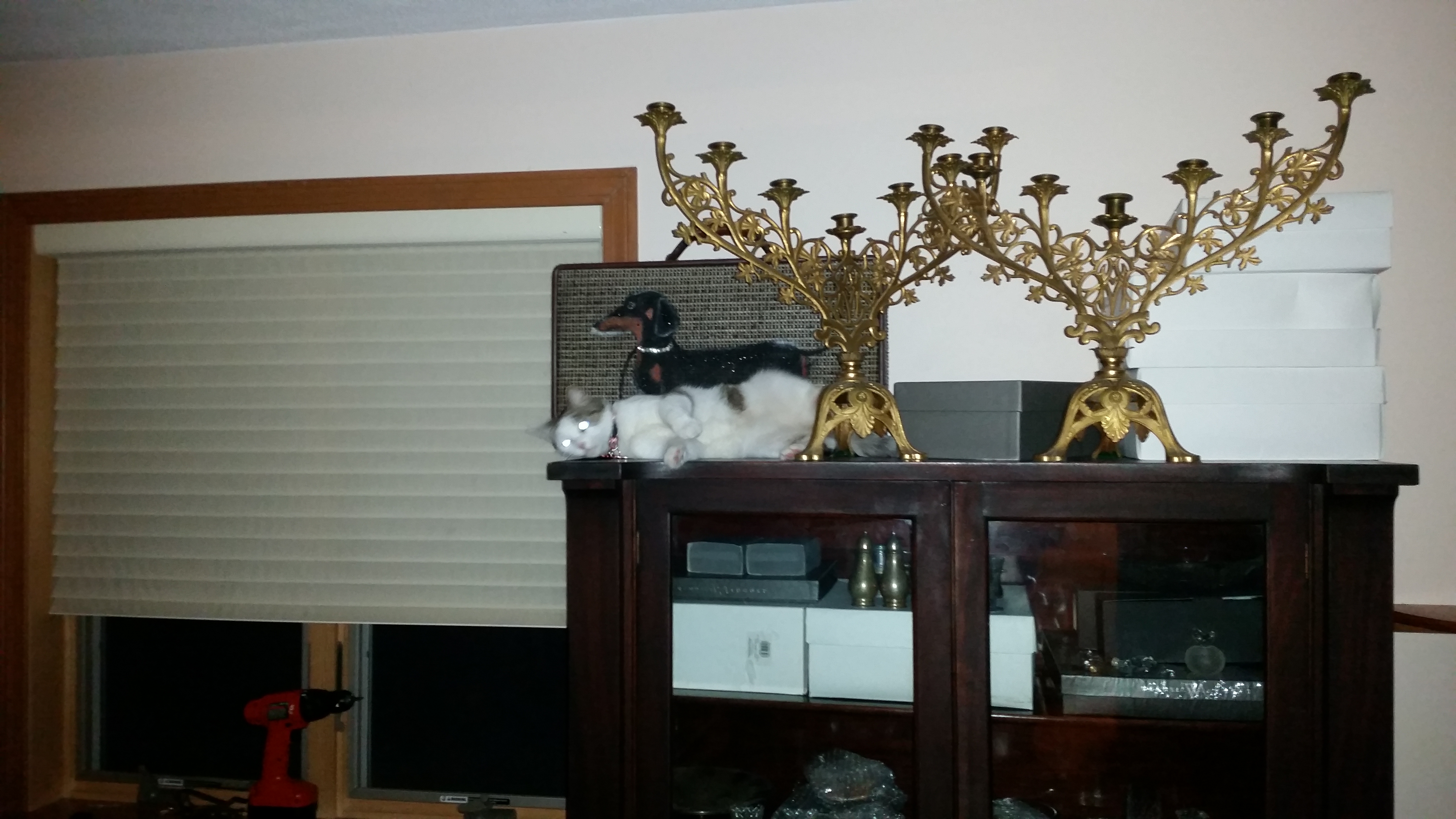 So now part of what we are doing is trying to rearrange some of the stuff that has been unpacked, because little Violet likes to go in places that even Scratch has (so far) not yet dared to tread.