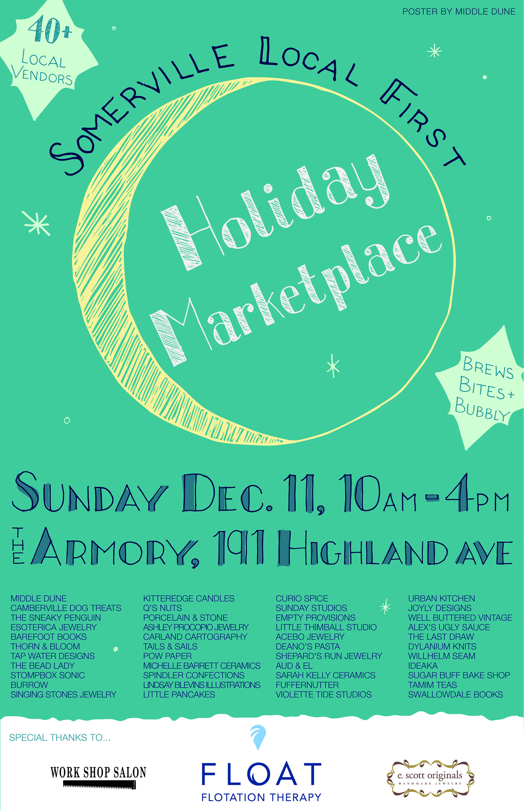 I like doing shows, don’t get me wrong, but I’m just glad that 2016 is almost over. We can count it in days now, people. So let’s celebrate with my last market of the year. Somerville Local First is presenting their Holiday Marketplace on Sunday December 11th from 10am-4pm.