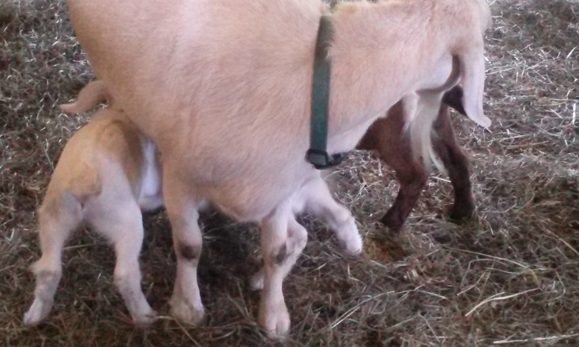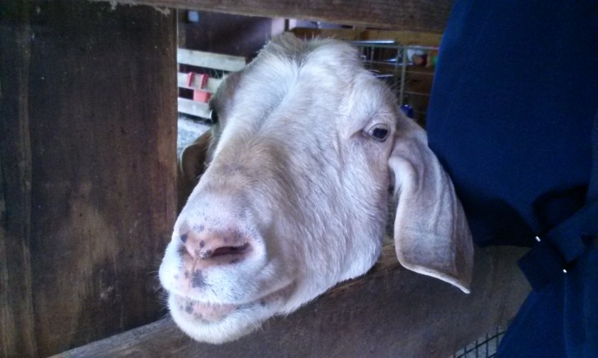 Drumlin Farm is a working farm where they emphasize sustainable agricultural practices. They also rescue and rehabilitate wildlife, such as birds of prey, deer, and foxes. And they also have a fairly large number of domestic farm animals, including many heritage or heirloom breeds (a favorite of mine). And lucky for us, we got to see some of these animals, including some of the newest residents – baby goats, or kids.