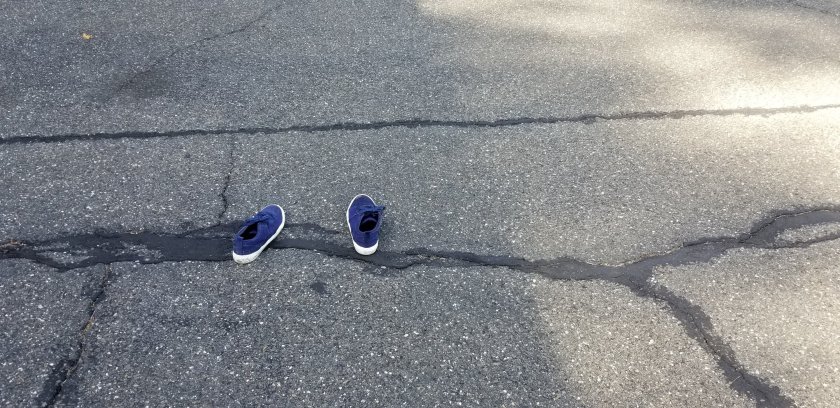 When we got out to the parking lot this morning we saw these shoes. Apparently a naked person was raptured? A naked person with their shoes on the wrong feet?