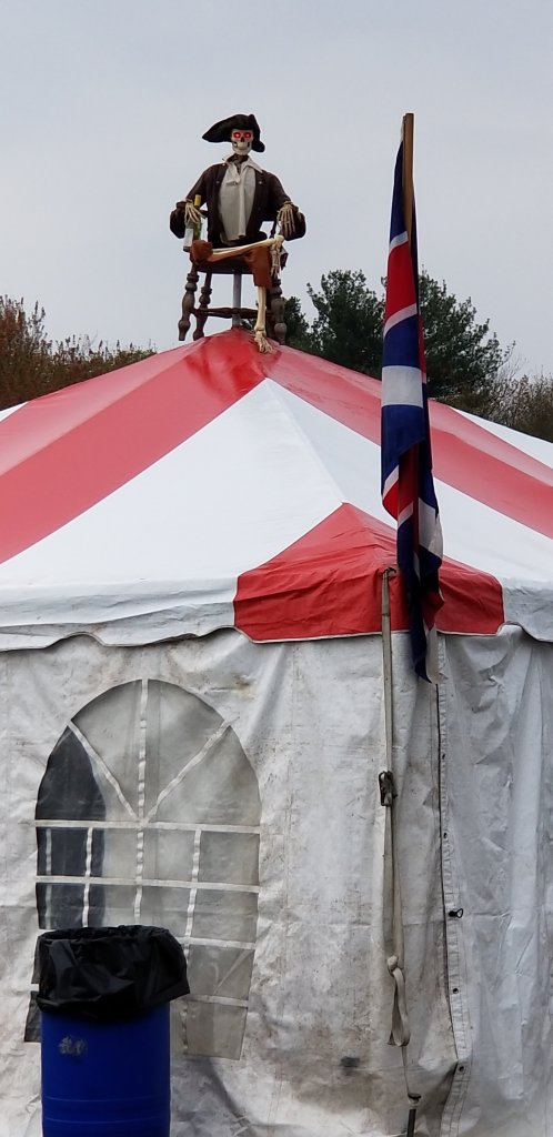 Previous Image Next Image 20190517_1452384843139032516553004.jpg The guy in this tent sells war memorabilia. The skeleton on top should have warned us that he also sells Nazi memorabilia. Bye, dude.