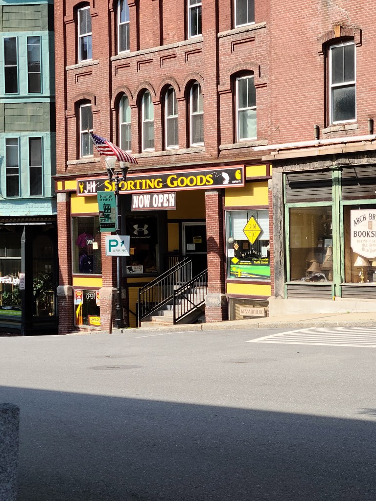 One of the places we stopped to visit was Bellows Falls, Vermont, where Kelly’s dad was born. It is a charming little town by the Connecticut River in southeastern Vermont, not far from where we were staying in Springfield. We were looking for a sporting goods store, and we found a little local one almost immediately. It was closed, but there was a sign on the door that said “come down to the hardware store if you need anything.” So, we did. And an employee from the hardware store went back with us to the sporting goods store to get us what we needed. Stuff like that makes me love small towns.