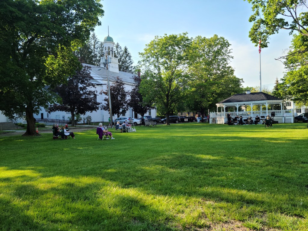 We also stopped in nearby Walpole, New Hampshire, which is a town where a doctor great-uncle of Kelly’s lived until around 20 years ago or so when he died. Much to our surprise, we discovered that Uncle Bill was locally famous as “Doc Tatem” and had apparently been the attending physician at a great many childbirths, among other things. So Kelly became somewhat of a spontaneous celebrity by proxy, as Uncle Bill and his wife had died childless, but everyone around was thrilled that a relative of Doc Tatem was visiting. So, they invited us to stay for a concert that was the first one held in the town since before Covid-19. So we did, and really enjoyed it.