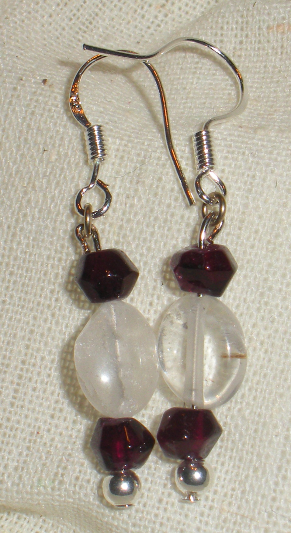 Garnet and rock crystal. 1 1/2 inch drop, 1/4 inch wide. $18