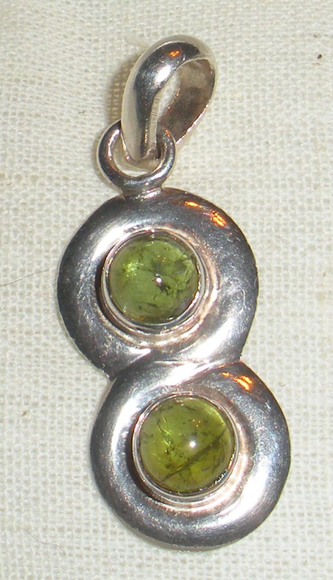 Sterling and peridot pendant. A vintage find from a fair. The stones are evenly matched and included as shown in the photo. 1 1/2 inch drop, 9/16 of an inch wide. 1/4 inch wide bail opening. $15  SOLD