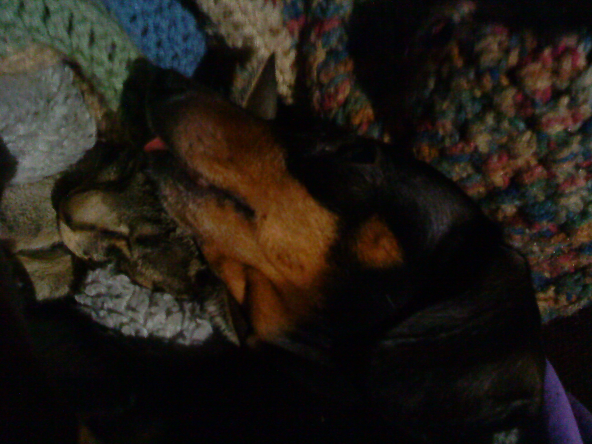 This is Moon. I can tell because he has more fur coming out of his ears. This is an unusually quiet moment for him. He usually does not want to miss anything and will bring you a toy to play with, even if it belongs to Jasmine!