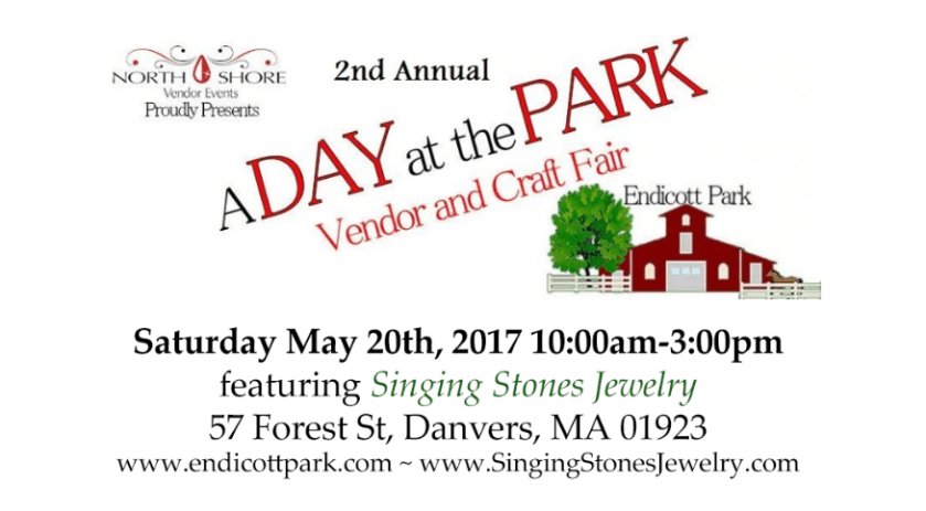 Tomorrow from 10:00am – 3:00pm Geoff and I will be at Endicott Park in Danvers, MA for the 2nd Annual A Day in the Park Fair. There will be more than 50 craft and other vendors. The park itself has an unbelievable amount of things to do. This is an ideal day out for the family, including the dog. Dogs are welcome at the fair and in the park as well. Plenty of parking is available. Directions are here.